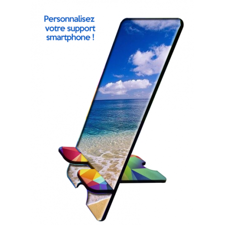 Personnalisez ce support pour smartphone grâce à notre outil de personnalisation en ligne : ajoutez une image, une photo, un logo ou un texte et obtenez un support unique et original. Ce support peut également servir de station d'accueil pour votre smartphone : vous pouvez poser votre téléphone et regarder des vidéos en toute simplicité ! Des trous sont prévus pour laisser passer le fil du chargeur.