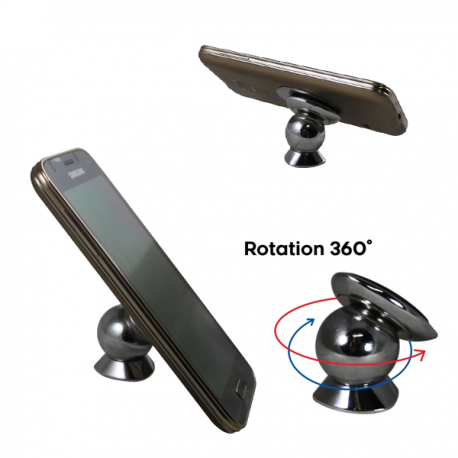 Avec sa rotation à 360°, le socle permet de tourner votre smartphone comme bon vous semble. Votre smartphone est maintenu grâce à la puissance magnétique. L'aimant est assez puissant pour maintenir un gros smartphone de poids plus important. Compact il ne prend que très peu de place et sait se faire discret sur votre tableau de bord.
