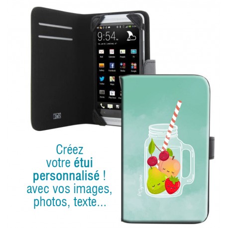 Son revêtement texture cuir lisse et son ouverture horizontale lui offrent à la fois un aspect élégant et une bonne prise en main. Cet étui portefeuille personnalisable avec photo pour Samsung Galaxy Grand Prime protègera votre smartphone contre les chutes et les chocs au quotidien.